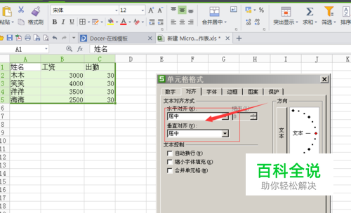 - 06我们打开对齐按钮之后,看到下面有写垂直对齐和水平对齐,我们分别选择居中,点击确定。