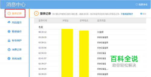 在打开的“消息中心”页面中,点击“登陆记录”选项卡,就可以查看QQ详细的登陆信息啦。