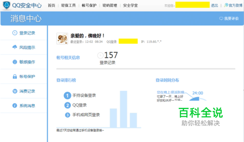 当然,我们也可以对当前QQ的“风险”、“敏感操作”以及“消费记录”、“账户安全”等信息进行详细的查看。