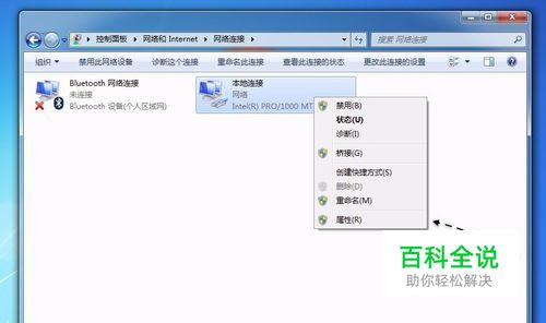 接着在网络连接窗口里,找到当前活动的网络连接,点击鼠标右键并选择【属性】选项。
