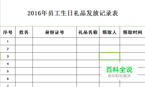 以此表格为例我们要锁定“2016年员工生日礼品发放记录表”这一行,首先我们要选中他的下一行,就是A2。