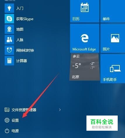 打开Windows10系统,然后点击开始菜单,在弹出的菜单中选择“设置”菜单项