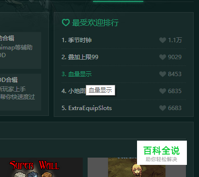 在排行榜找到血量显示的MOD: 在模组仓库当中,有不同的MOD,有外观类型的,有游戏辅助的,不过这个血量显示还是很受欢迎的,所以我们可以直接在MOD的排行下载列表当中找到他。