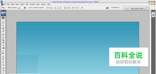 1、首先在photohop中创建一个新图片,大小为1000px*500px,然后设置前景色为#3497b6背景色为#97d5e6,使用渐变工具拖动出一个线性渐变,如图所示
