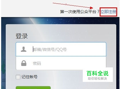 进入到“微信公众平台登录界面”,点击“立即注册”,如图所示;