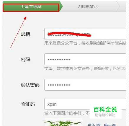 注册“基本信息”,邮箱和密码输进去,点“确定”,如图所示;