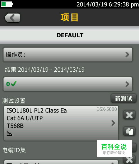 仪器开机预热3分钟,点击项目,出现项目栏目,点击【新测试】出现测试设置,点击电缆类型。