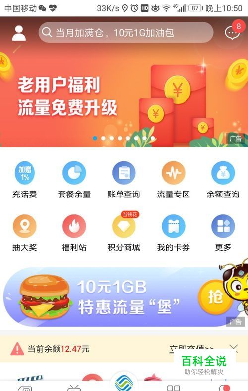 现在来到了网上营业厅,点击进入“老用户福利流量免费升级”