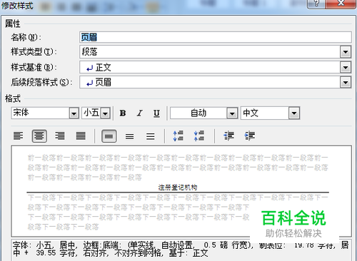 选择应用样式对话栏里的“修改”出现“修改样式”对话框