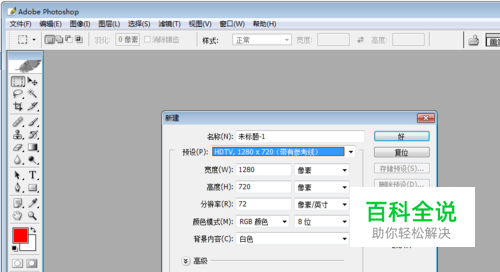 在PS中根据我们视频的大小新建一图片文件,