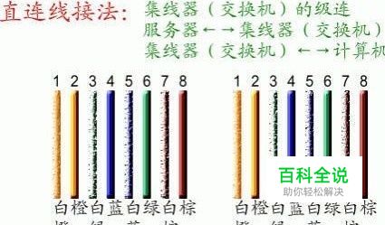 直通线: 网线两端水晶头做法相同,都是TIA/EIA-568B标准,或都是TIA/EIA-568A标准. 用于:PC网卡到HUB普通口,HUB普通口到HUB级联口.一般用途用直通线就可全部完成.