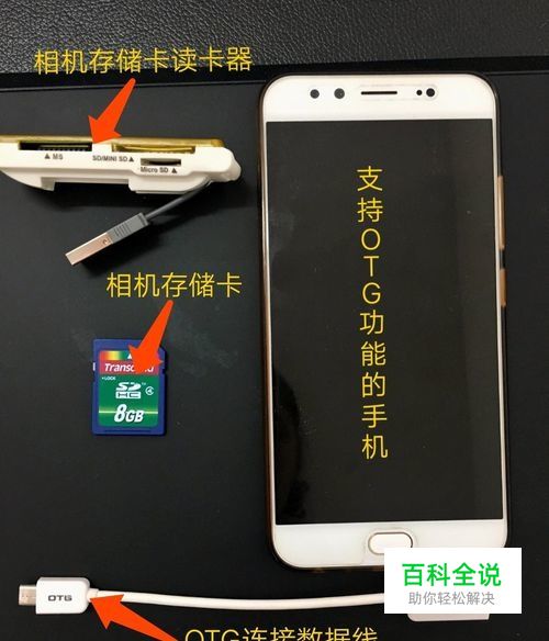 第一步,你将需要: 1. 支持OTG功能的手机 2. 相机存储卡读卡器 3. 相机存储卡 4. OTG连接数据线
