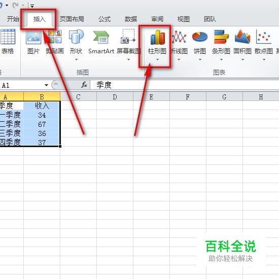 然后点击“插入”——“柱形图”。