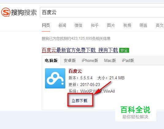 首先,使用搜狗搜索百度云,然后点击“立即下载”。