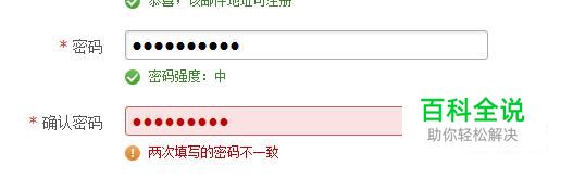 其次是密码的填写,密码需要填写两次,且两次填写的密码必须一致才能通过 (密码不一致系统会自动提醒修改),密码最好是数字和字母的结合,这样能更大的增强邮箱的安全性。