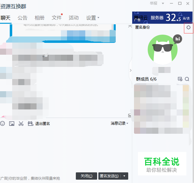 在群聊天的右上角就可以看到自己匿名后的名称,如果不满意,可以选择右上角的齿轮按钮。