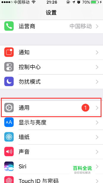 如果苹果手机推出iOS版本新版本后,此时用户会在设置图标上方看到有个1字,点击“设置”。