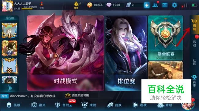 进入王者荣耀界面,选择“商城”