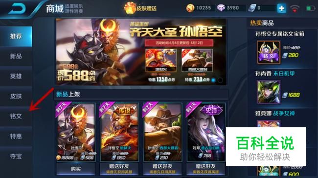 进入商城后,点击“铭文”