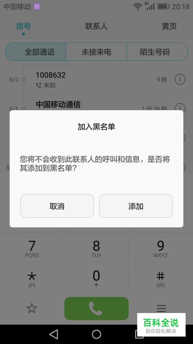 确定将该电话号码加入黑名单后即可。