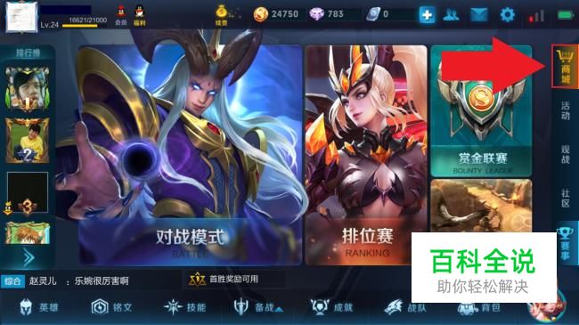 对于英雄的获取,我们首先想到的就是在商城中购买了,登陆自己的王者荣耀,在主界面中点击【商城】。