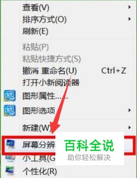 会有一个选项框弹出来,我们选中“屏幕分辨率”这个选项。