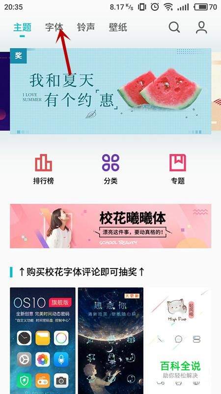进入主题商店后,选择“字体”