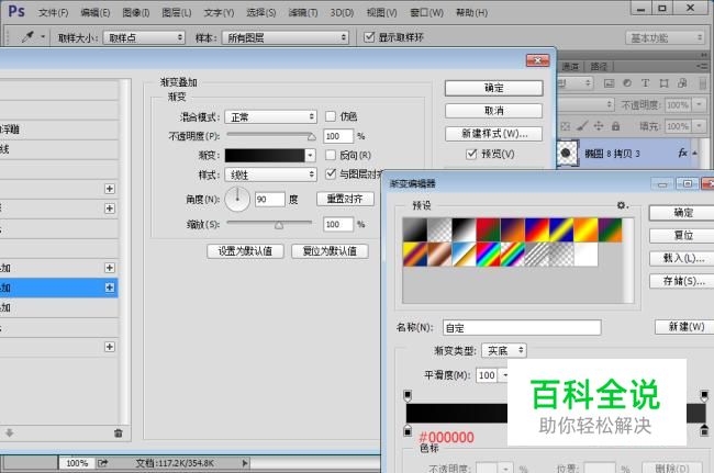 接着我们画一个85*85的正圆,移动到画布的中心,并添加图层样式渐变叠加,参数如图。