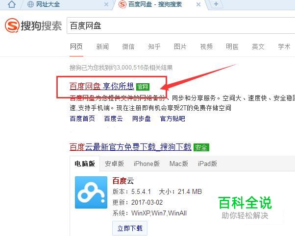关注别人百度云可以知道别人的分享动态,而我们先需要搜狗搜索百度网盘。