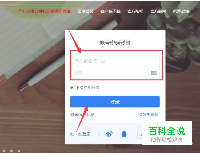 打开百度网盘之后,输入你自己的百度账号和密码登录。