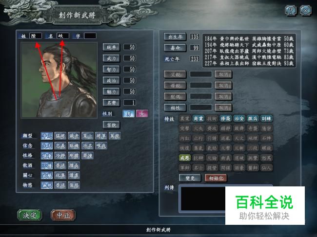 年龄这个游戏里一定要改的,不要弄到最后年龄忘记弄了,他默认的出生年是135年,到184年登场都已经50岁了。。。出来养老来了,所以年龄一定要弄一下。