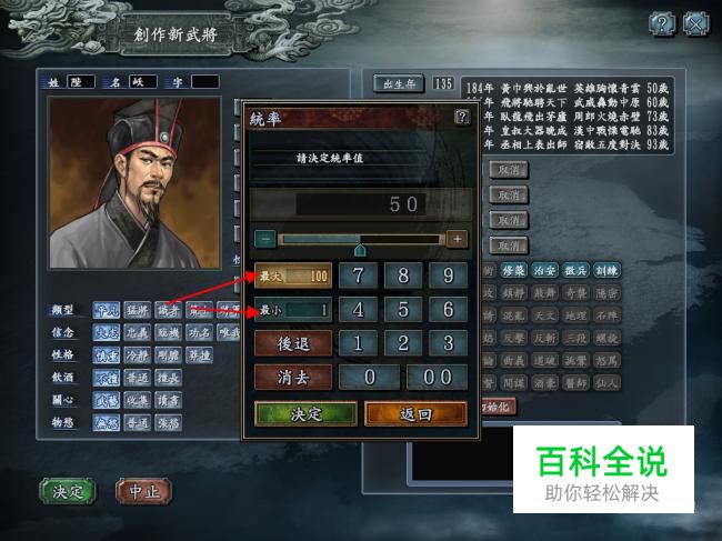 武将数值的设定比较随意了,1-100都可以设置,最高100,这个也没必要都设成最高,设个八九十就差不多了,游戏里有很多成长机会,以后会慢慢增加的。