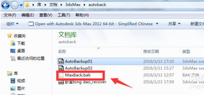 3dmax2018崩溃后找回文件的步骤四:找到后缀bak的文件