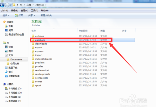 找到3dmax文件夹,然后在这个文件夹下面,找到autoback文件夹,将其打开。