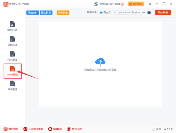 步骤1,先在电脑上下载并安装“优速文件压缩器”工具软件,然后打开使用,选择左边列表中的【Word压缩】功能,再进入下一步操作。