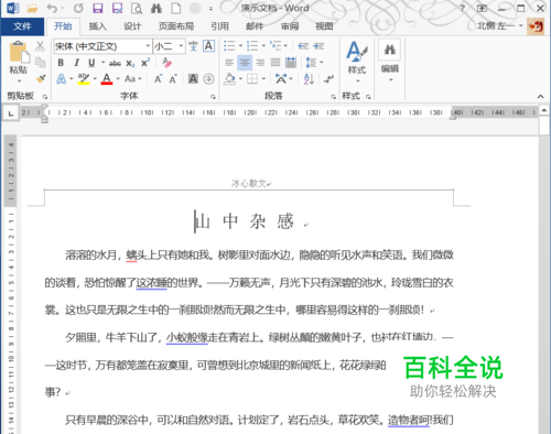 选择需要被隐藏的文字,把文字颜色修改成和背景颜色一致,这样的话,被选中文字看起来就像被隐藏起来一样了。