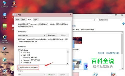 单机桌面“个性化(R)”—“声音”—勾上“播放Windows启动声音(p)”如下图;