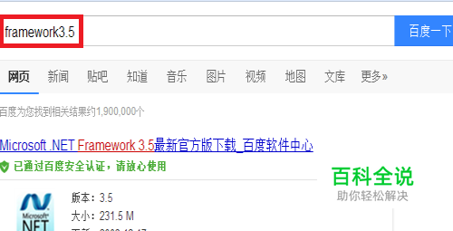 首先在浏览中输入framework3.5,在网页结果中点击普通下载。