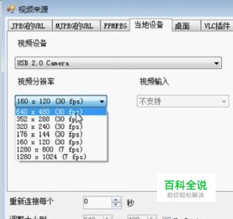 在“当地设备”选项页,将本本摄像头设为视频设备,并选择一个视频分辨率。为了确保录制视频的流畅度,建议选择30 fps视频流(如下图),例如640x480(30 fps),但必须确保摄像头具有较高的解析度,通常主流本本内置的摄像头都可以胜任。