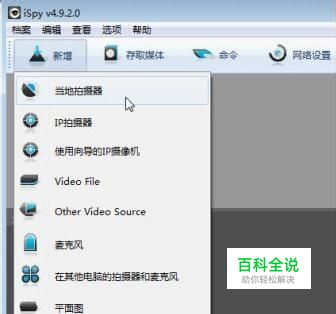 在本本上下载并安装iSpy软件,运行后单击“Settings”“Options”“中文”选项,将软件界面改为中文。单击“新增”按钮后,选择“当地拍摄器”(如下图),即本本内置摄像头。