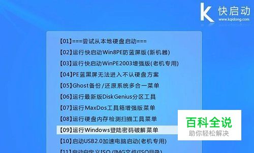 将制作好的u盘启动盘插到电脑USB插口中,然后在开启电脑之后按下相应的启动快捷键,选择U盘启动项即可进入快启动主菜单,将光标移动到“【09】运行windows登陆密码破解菜单”后按下回车键确定即可;如下图: