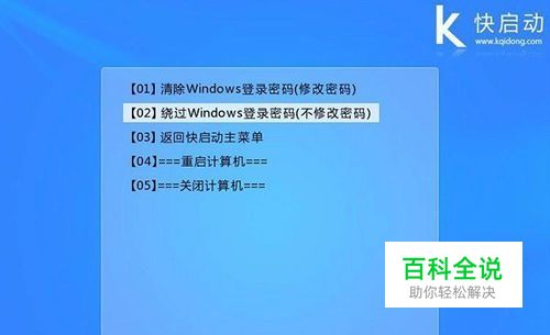 接着,将光标移动到“【02】绕过windows登录密码(不修改密码)”;如下图: