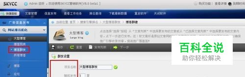 群发设置,点击新增项目填写好“项目名称”、“随机发布数目”以及选择好“发布文章” 然后点击“保存”—“下一步”