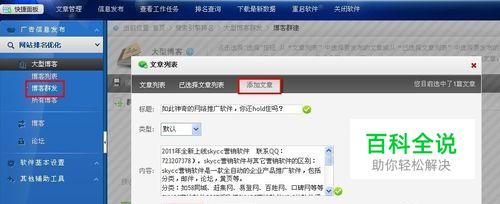 点击“选择”之后,会弹出一个文章列表选框,先在“添加文章”面板编辑好要发布的文章内容,然后点击保存----确定