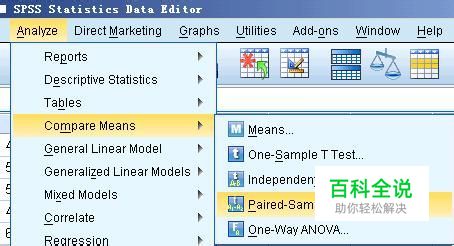 打开spss导入数据,然后在菜单栏上执行:analyse--compare means--paired samples t test