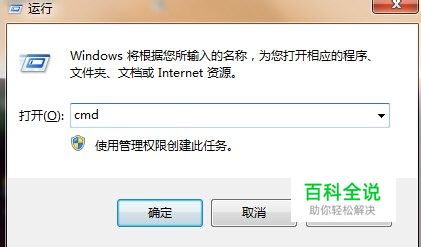 在电脑开机的情况下,打开电脑开始菜单里的“运行”,输入“cmd”,然后点击“确定”。