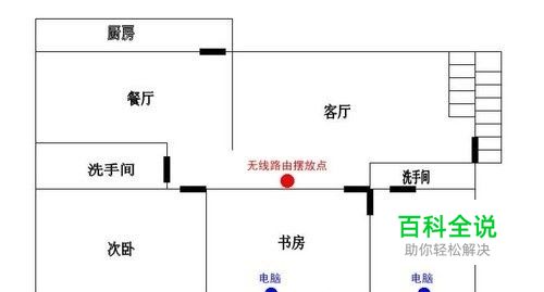 一、合理摆放无线路由器的位置 由于无线信号在穿越障碍物后,尤其是在穿越金属后,信号会大幅衰减。而在我们家庭的房子里,有很多钢筋混凝土墙,所以我们在摆放无线路由器的时候,应该使信号尽量少穿越墙壁。 以下图所示的家庭结构为例,我们一般很少会在厨房或餐厅里上网,而书房和卧室是我们平时经常上网的地方,所以我们在选择无线路由器的摆放位置的时候,可以选择离厨房和餐厅远一些地方,而尽量靠近书房和卧室。 如图所示,书房外墙处是摆放无线路由器的理想位置,这样摆放能够使客厅,书房,主卧,次卧都有一个比较好无线信号。当然,不同家庭结构都不一样,大家应该视具体情况而定。一般来说,无线网卡的客户端都具备信号强度的检测能力,大家拿笔记本在房间各处查看信号强度,从而选择一个最佳的摆放点。另外也可以安装Network Stumbler软件来检测信号的强度。
