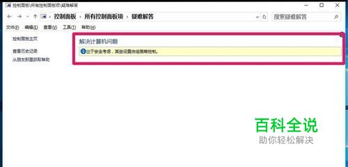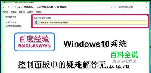 打开Windows10系统的控制面板,双击疑难解答,出现提示:出于安全考虑,某些设置由组策略控制。