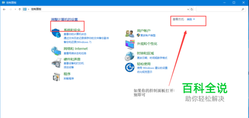 在桌面找到 控制面板打开,如果桌面没有请从小娜(左下角小圆圈)出搜索控制面板。选择 系统和安全