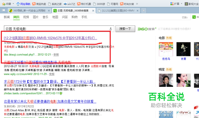 在搜索框里输入 :【电影名】 无极电影,然后搜索,